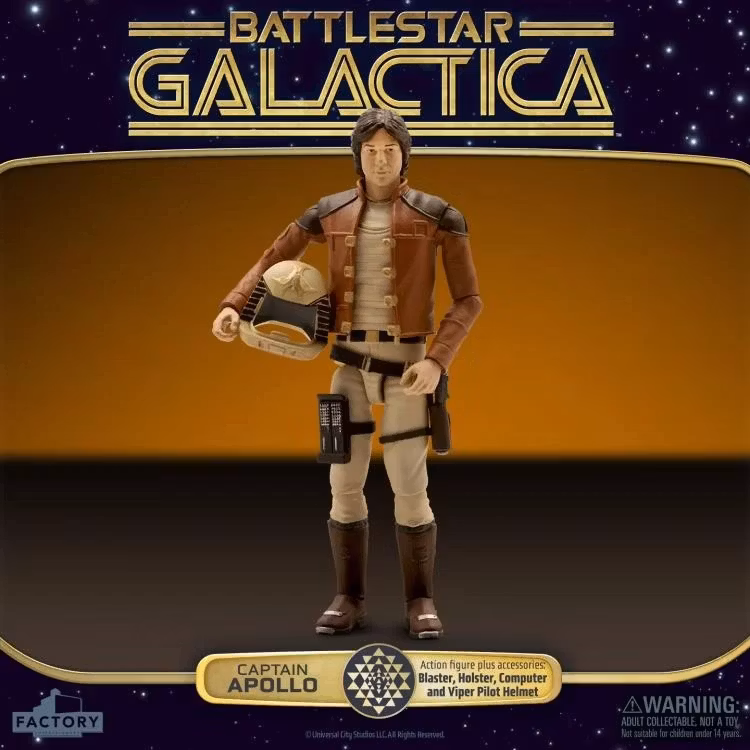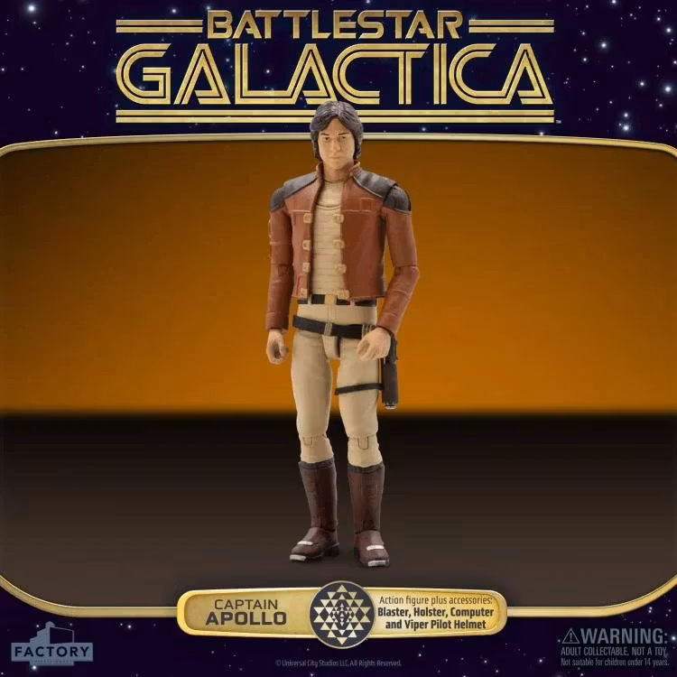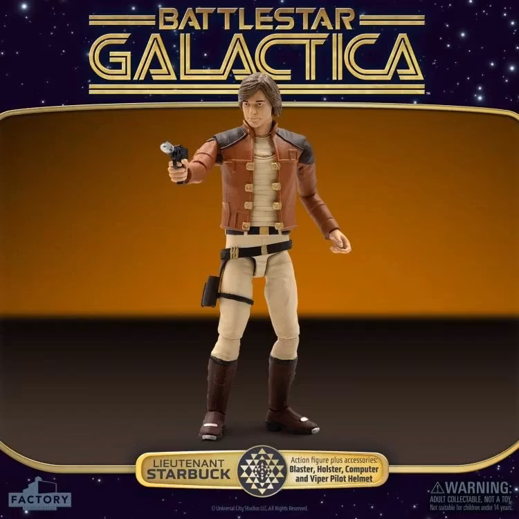 Från den klassiska 1970-talsserien Battlestar Galactica kommer en ny samling actionfigurer i skala 3,75, inspirerade av de karaktärer och designer som definierade en generation av science fiction-tv. Varje figur har en autentisk karaktärslikhet, tretton rörelsepunkter och noggrant detaljerade, skärmkorrekta kostymer och tillbehör.