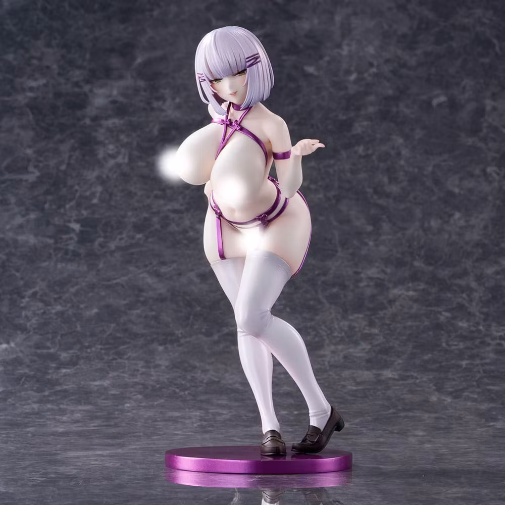 Vi presenterar en figur av den silverhåriga, bystiga gymnasietjejen illustrerad av Mitsudoue! Den här figuren fångar hennes yppiga kurvor i en lockande pose. Skjortan, kjolen och bh:n är alla avtagbara, och utbytbara armdelar gör att du kan visa henne i din föredragna outfit.