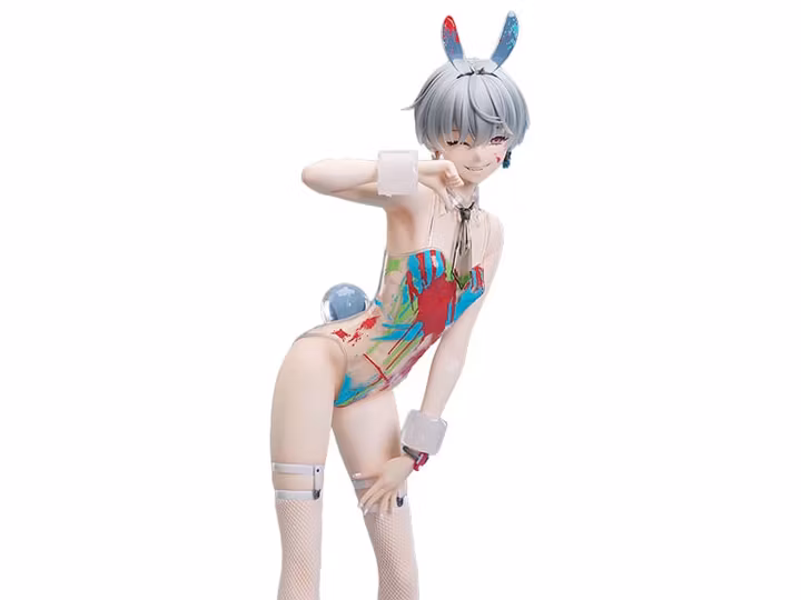 The translucent bunny suit and clear accessories highlight the fine sculpting details, while the mesh fabric tights add a realistic texture.