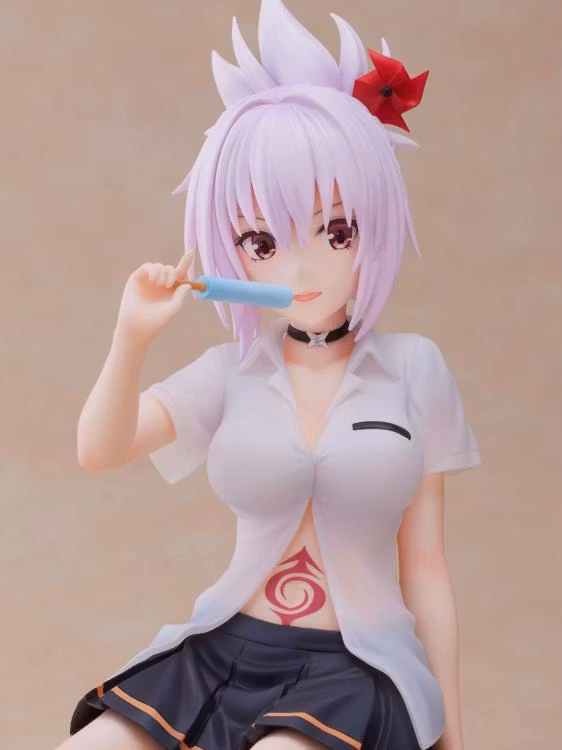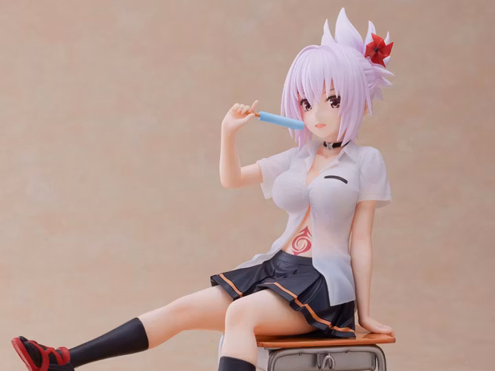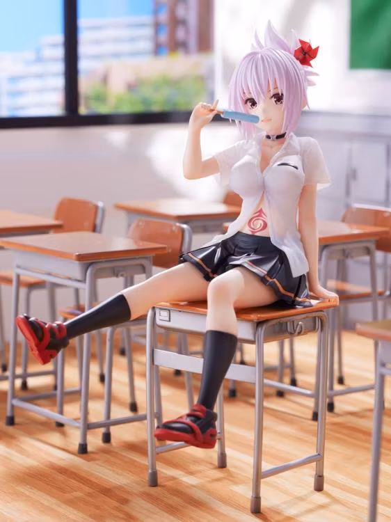 Från anime-serien Ayakashi Triangle kommer en figur i skala 1/7 av huvudpersonen, Saisato Kazamaki, som förvandlades till en kvinna genom tekniken för sexuellt uppvaknande! Figuren av henne som ler när hon sitter på sin skolbänk och den skira Y-shirten uttrycks omsorgsfullt! Dessutom är piedestalen utformad med bilden av ett klassrumsgolv. Se till att lägga till denna Matsuri Kazamaki-figur till din samling!