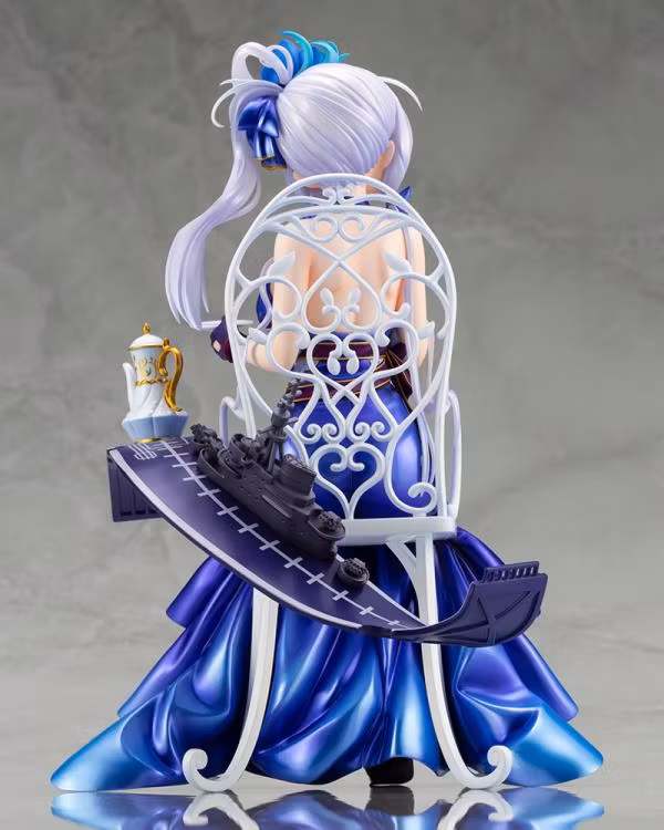 "Illustrious from the popular mobile shooting game Azur Lane is being made into a 1/7 scale statue! Illustrious's "Endless Tea Party" skin from the tea party series is faithfully recreated thanks to Kotobukiya's expert craftsmanship! Illustrious is perched regally on a dainty white garden chair, sipping a cup of tea. Her elegant dress is painted in an eye-catching gradient, and the contrast of the colors is pleasing to the eye. From the gorgeous accents and the delicate folds in the fabric on her dress to the sparkling stones on the ankle straps of her shoes, Illustrious is crafting with stunning detail from head to toe. A detailed piece packed with refined details from her delicate tea set to the elaborate ornaments in her hair, this regal beauty is sure to win your heart!