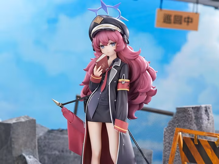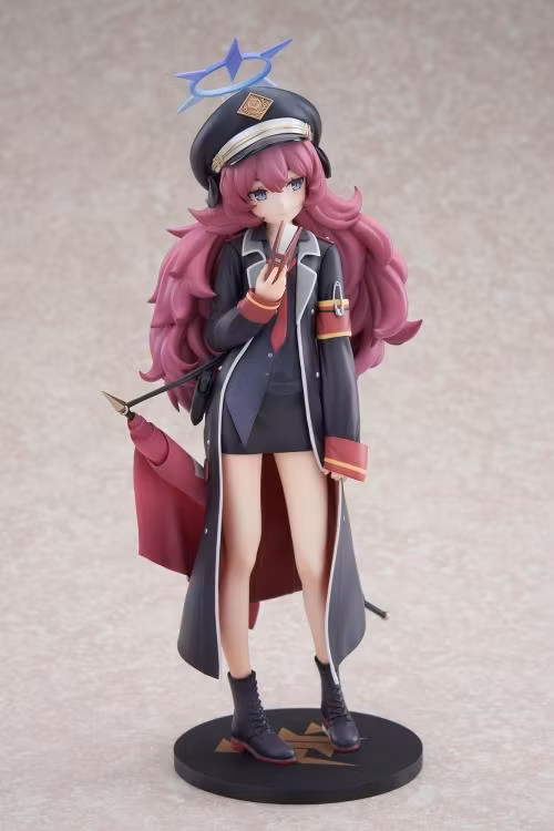 From the popular Blue Archive video game comes the Iroha 1/7 scale figure by Apex! Iroha is pictured in a short skirt, long duster jacket, and hat, all in black. The figure is also holding a coiled-up flag on her hip and a book in hand.