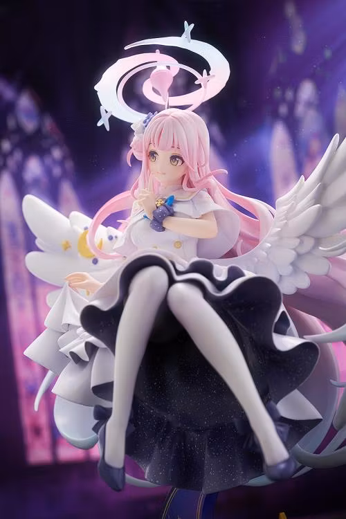 Från det populära spelet "Blue Archive" kommer en figur i skala 1/7 av Trinity General School Tea Party-medlemmen, Mika! Figuren visar Mika i en original flytande pose med utspridda vingar, som om hon sänkte sig från himlen, och ett finger höll upp mot hennes oskyldiga och söta leende. Den eleganta gesten framhäver hennes bedårande och iögonfallande charm, som säkerligen kommer att vinna över dig. Hennes kjol har skulpterats noggrant för att ge ett fluffigt och lätt utseende, med en natthimmeldesign på undersidan för att kontrastera figurens ljusa och pastellfärgade toner.