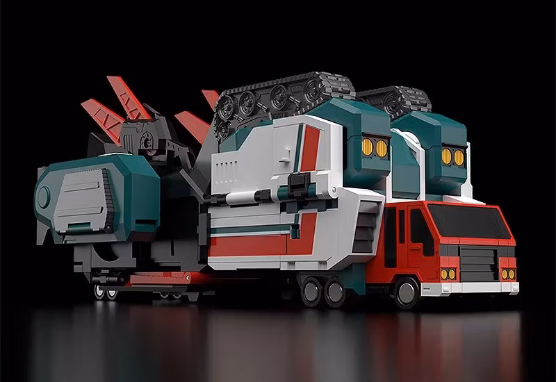 From the anime series The Brave Fighter of Legend Da-Garn comes a new complete action figure: THE GATTAI Seven Changer! In addition to the robot mode, it can transform into all seven modes: jetplane, submarine, truck, tank, jaguar, and griffon! The shoulder joints and other parts of the figure are articulated, allowing for complex transformations and a high level of action in robot mode. Changer Schwerdt (Seven Changer's sword), interchangeable hand parts and base to display the hand parts and sword included.