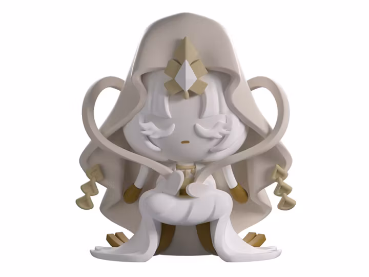 What is better than a delicious cookie? An Immortal cookie! Or maybe Mystic Flour Cookie, who has whispered her way into the hearts of Youtooz for her debut. Floating at 4.7 inches tall and dressed in an ornate white and beige robes that flow in the wind, she levitates with legs crossed as her robes touch the floor. With a white bob framing her serene face and a wide hood flowing from her head, long strands of fabric wrap around her from the hands held to her front. The exterior of their packaging has been illustrated to show a glowing ethereal Mystic Flour Cookie wrapped in fabric and floating above a building, while the yellow striped interior is speckled with stars. The protective sleeve is designed to look like the layers of cake with icing at the top as their figure can be seen through the large clear window at its front. This collectible ships in a matte, embossed, protective outer sleeve and a custom-sized plastic protector for maximum protection during shipping.