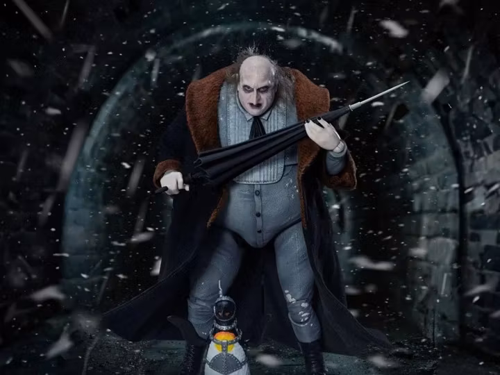 Beast Kingdom proudly presents the latest addition to its DAH series, DAH-134P Batman Returns The Penguin. This figure faithfully captures the Penguin’s dark look from the film. The head sculpt highlights the facial details, rooted hair creates his messy locks, and the skin texture reflects his unique expression. The body replicates his rounded physique and signature gray suit. The coat, made of quality fabric, includes brown velvet-like accents on the collar and cuffs, with interior details like lining and pockets. This figure has 18 points of articulation and includes interchangeable hands, along with the signature umbrella, mini weaponized penguin, bucket, fish, and an extra set of hands.