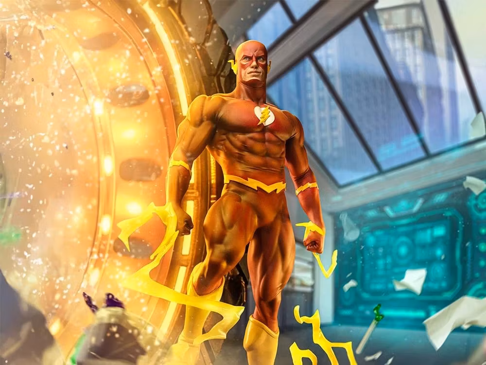 Celebrate the speed force with this Legacy Replica 1/4 scale statue of The Flash by Iron Studios. With a striking pose and incredible detail, this collectible is a centerpiece for any DC fan.
