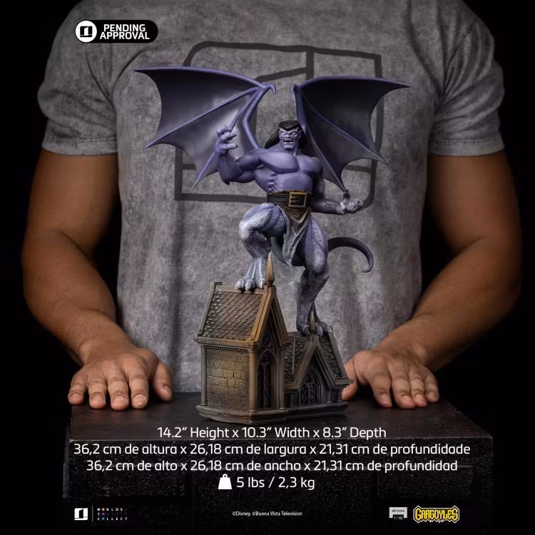 Produced in high-quality resin and hand-painted, the 1/10 scale statue features Goliath, with his wings unfurled, standing on a rooftop. The statue is perfect for any Gargoyles fan!