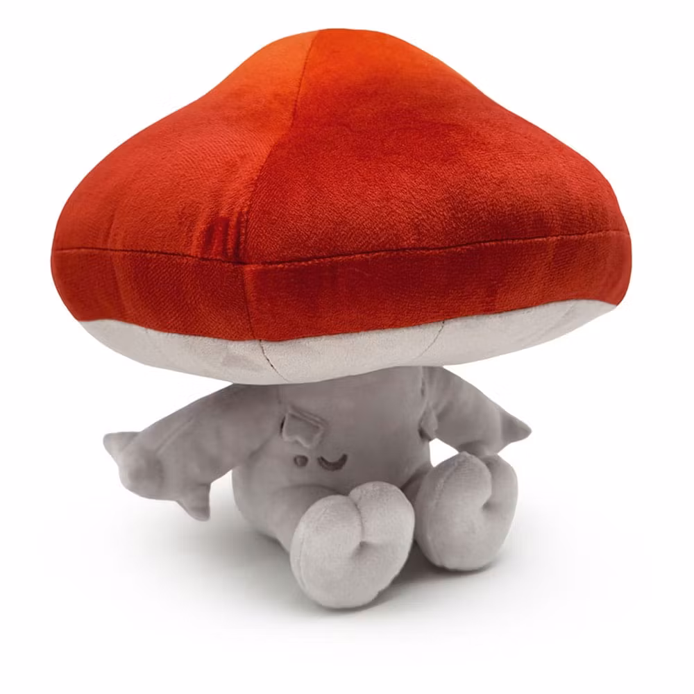 Aww look how cute he is! Wait, why are there so many of them? WHAT ARE THEY DOING?! RUN!! Sitting at 9 inches tall with a deep red cap that has a small notch sliced out of its rim sitting atop their light grey stem of a body, short legs stick forward as their arms reach out to either side with a trio of pointed fingers on each hand. This plush is packed to the seams with 100% PP cotton and is made of the softest minky material absolutely perfect for cuddling or sparing with!