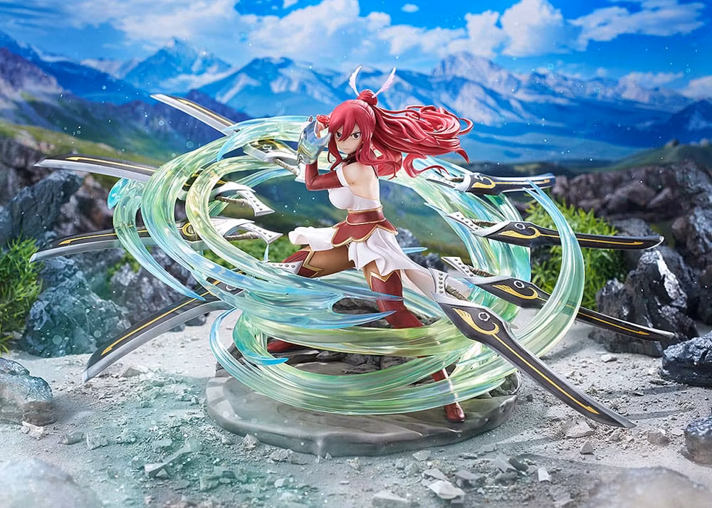 Från Hiro Mashimas populära mangaserie "FAIRY TAIL" kommer en skalenlig figur av Erza Scarlet som bär sin Ataraxia-rustning, med en vit klänning och vingliknande svärd.