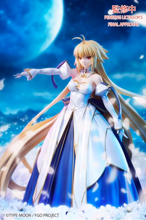 Från det populära mobilspelet "Fate/Grand Order" kommer den första skulpturen av "MoonCancer/ARCHETYPE:EARTH" i hennes första himmelsfärd! Den imponerande klänningen är troget återgiven utifrån illustrationen. Pärlfärg appliceras för att återge klänningens struktur. Förutom klänningen ägnade Aniplex också stor uppmärksamhet åt formen och strukturen på varje del av figuren, såsom puffärmarna, bandet på ryggen och skorna. Hennes långa, vackra hår är mjukt och utspritt som visas på illustrationen, och i kombination med klänningen skapar det en voluminös finish. Vi hoppas att du kommer att njuta av den överväldigande närvaron av denna produkt i din samling!