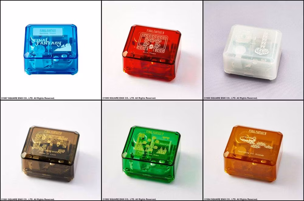 Klassiska låtar från de första åren av FINAL FANTASY finns nu som speldosor. Designen på fodralet är hämtad direkt från scenerna där dessa låtar hörs för att framkalla älskade minnen från serien.