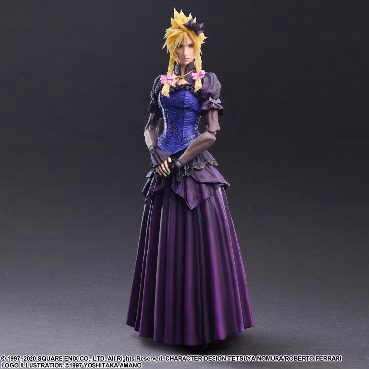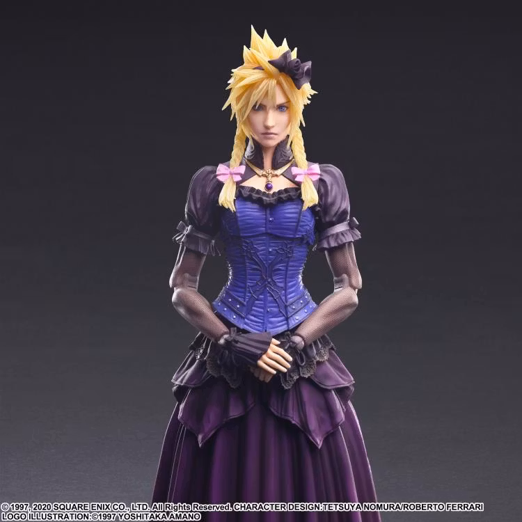While retaining Cloud's fearless impression, the figure shows his stoic demeanor as Cloud adorns a hair ornament, makeup, and pigtails to complete his mission.
