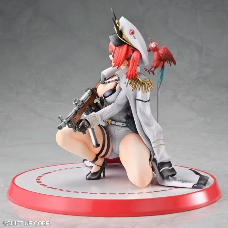 Hennes bedårande leende, komplett med en glimt av hennes söta huggtänder, och hennes fylliga kropp insvept i en krispig vit uniform har troget förts till 3D-form. Varje detalj har noggrant återgivits – från dödskallemotivet vid halsen och det kolsvarta strumpebältet, till tvåhandsvapnet SMG Ferocious. Skulpturen och målningen glänser även i de minsta detaljerna.