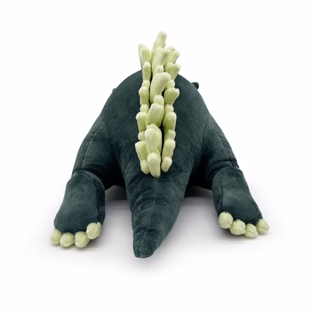 It's been a long day of rampaging (and a little saving the world) and Godzilla's made his way back to Youtooz to take it easy and recharge for a bit! Laying at 16 inches long with his arms and legs flopped out, a content toothy smile crosses his face as thick eyebrows rest atop slumbering eyes and short ears stick backwards. With small scales on his forehead that lead into a series of pale spikes that run along his back and down onto a thick tail, his dark green body is fully at peace as he relaxes to the max! This plush is packed to the seams with 100% PP cotton and is made of the softest minky material, absolutely perfect for cuddling after laying waste to a city.