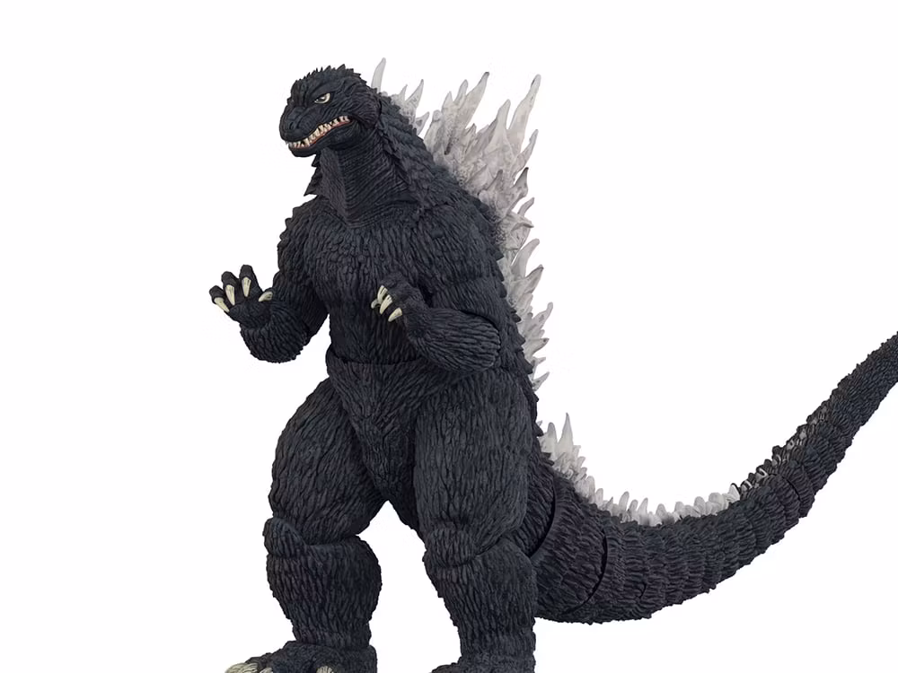 Evacuate the area. The battle for Tokyo is underway, and Godzilla Millennium (2002), as a Toho ULTIMATES! figure, is about to crash out. Inspired by the Godzilla Against Mechagodzilla film, this collectible stands at 8” tall. It’s highly articulated, capable of replicating kaiju chaos on your shelves, display cases—your work desk—or wherever you think this Godzilla Millennium ULTIMATES! figure might strike next. Change up the look of this collectible with two interchangeable heads, including one that’s shooting a translucent blue heat ray. Two sets of claws are also included, and the collector-friendly window-box packaging features original Super7 artwork, inspired by the massive power of this creature. Clear the area of tall objects and bring Godzilla Millennium (2002) ULTIMATES! home.