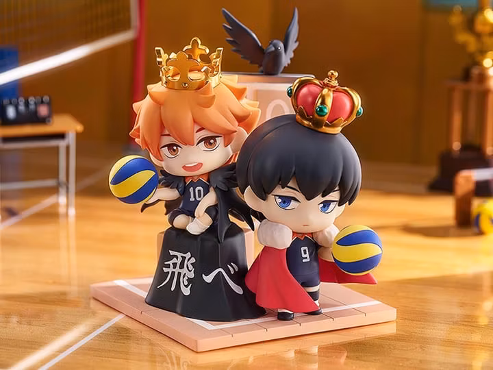 From the classic anime series Haikyuu!! comes a chibi figure set of the dynamic setter and spiker duo, Shoyo Hinata and Tobio Kageyama! Dressed in royal clothes after winning a difficult tournament, you won't want to miss adding this royal pair to your collection! Order yours today before the final round!