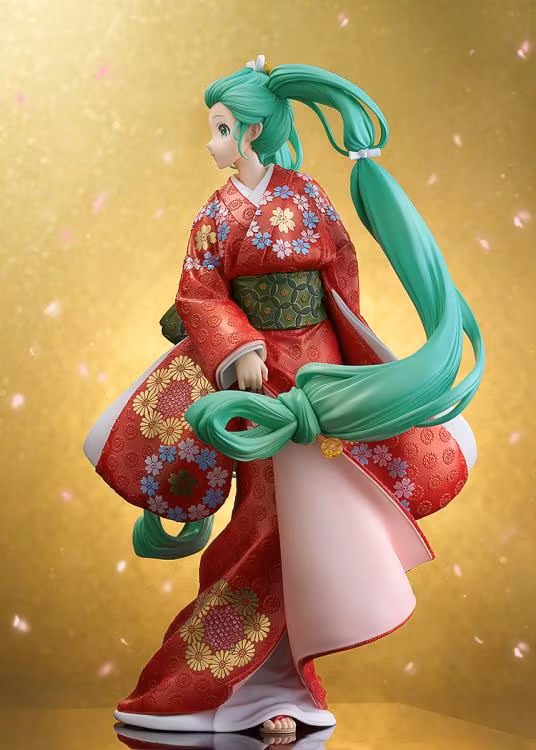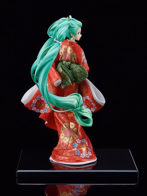 Figuren är en noggrann återskapande av illustratören Rellas anpassning av Miku i en röd furisode och med en fukimaegami-frisyr, baserad på målningen "Beauty Looking Back" av Moronobu Hishikawa.