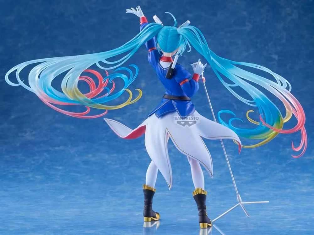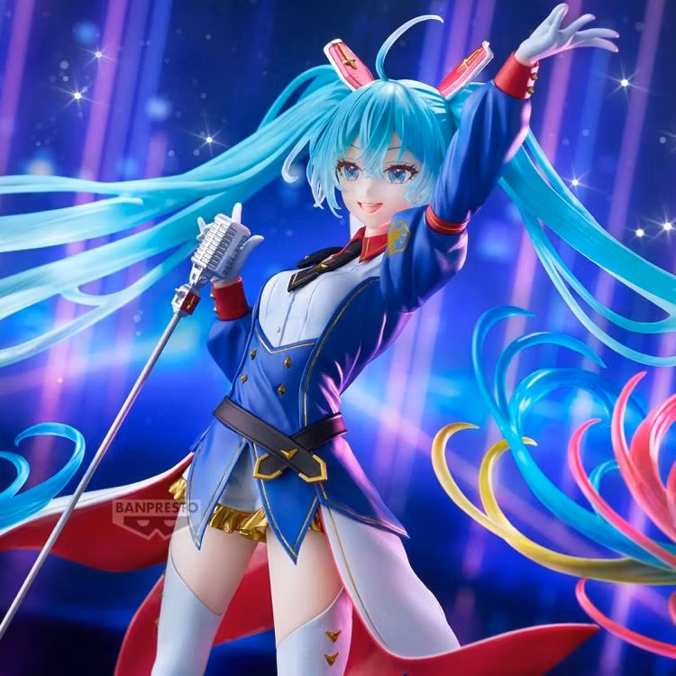 Let's dance! Banpresto is ready to celebrate the 45th anniversary of the Mobile Suit Gundam franchise and have brought onto the stage the international virtual popstar Hatsune Miku! Part of the fan favorite Banpresto Evolve line, this version of Hatsune Miku showcases the star wearing a Gundam inspired outfit as she holds a microphone, ready for the big finale. Order your figure today and get ready to sing the night away!