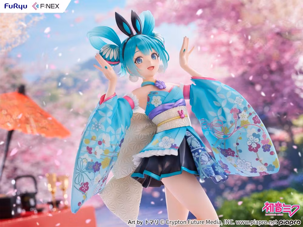Based on the iconic Vocaloid star comes the F:Nex Hatsune Miku (Wa-Bunny Ver.) 1/7 scale figure by FuRyu! This figure is over 10 inches tall and displays Hatsune Miku in a fun bunny outfit with a tradional style design. Miku is intricately detailed to fully capture the character's look as she stand in a popular pose. Be sure to add this figure to your collection!
