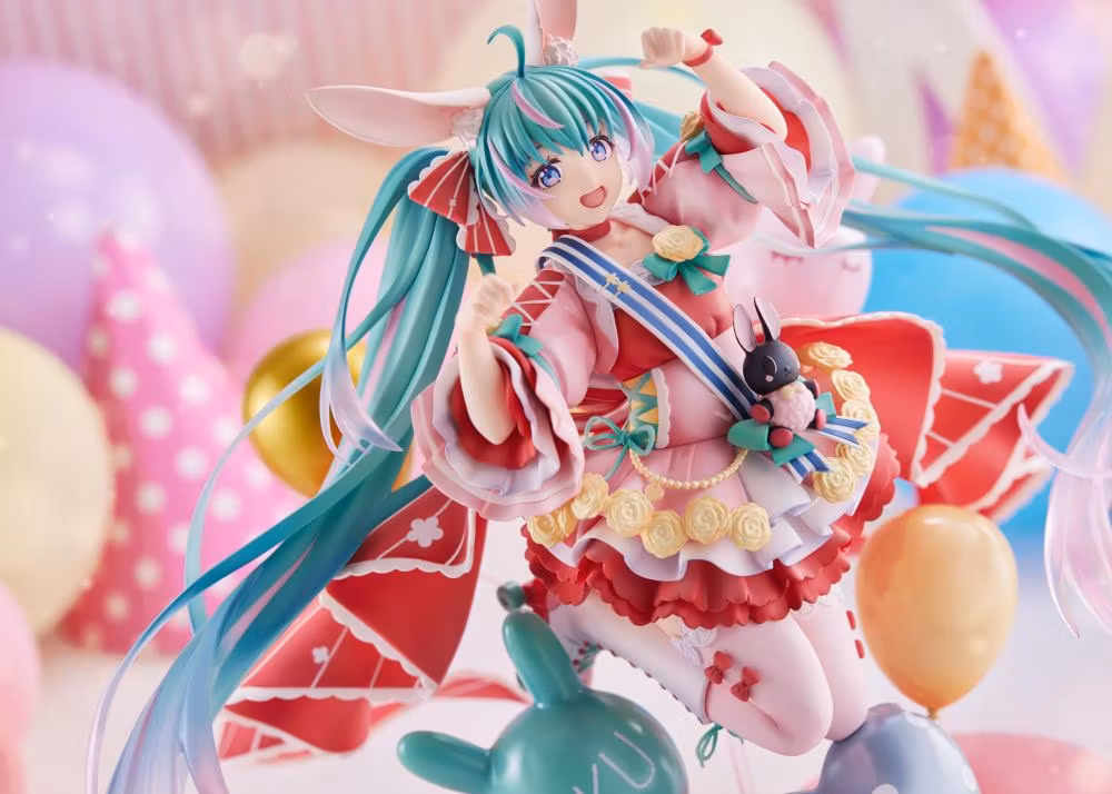We're happy to introduce the next figure in the TAITO Spiritale 1/7 scale figure line, Hatsune Miku in her Pretty Rabbit outfit from her Birthday celebration in 2021! Miku is ready to party in her wonderfully frilly outfit, adorned with flowers, ribbons, and rabbit ears, while surrounded by balloons! This figure commemorating Miku's 14th anniversary is an excellent addition to any Hatsune Miku fan's collection.