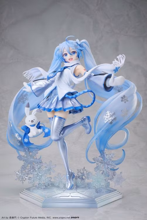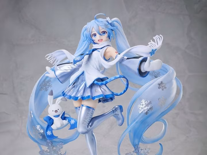 Snow Miku, tecknad av den populära illustratören Madoka Morikura, har ett ljust leende som blåser bort vinterns kyla och klarblått hår. Hennes vita, blå och silverbaserade kostym har också troget återgivits genom modellering och färgläggning.