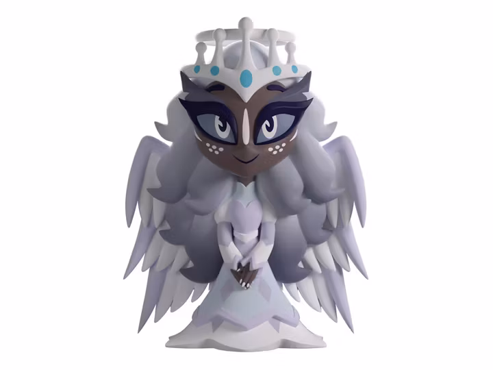 Sera has seen that sinners really can be saved and has come to Youtooz to witness our redemption! Wait... we're not sinners... are we? Standing at 5 inches tall with her hands crossed at the front as a pair of large grey and blue eyes look out from above, freckled cheeks, a pair of halos rest atop the long grey-white hair that falls down past her waist, as elegant pink and white wings fan out from her shoulders. Wearing an angelic dress that has a high collar and sleeves that come over her hands, its rounded white shoulders match her forearms as a diamond pattern runs down its two tiered silhouette. The exterior of her packaging looks down on an intricate golden dial, while the interior is filled with swirling clouds against an orange and purple sky. The protective sleeve is then designed to show off a dark cityscape as her figure can be seen through the large clear window at the packaging's front. This collectible ships in a matte, embossed, protective outer sleeve and a custom-sized plastic protector for maximum protection during shipping.