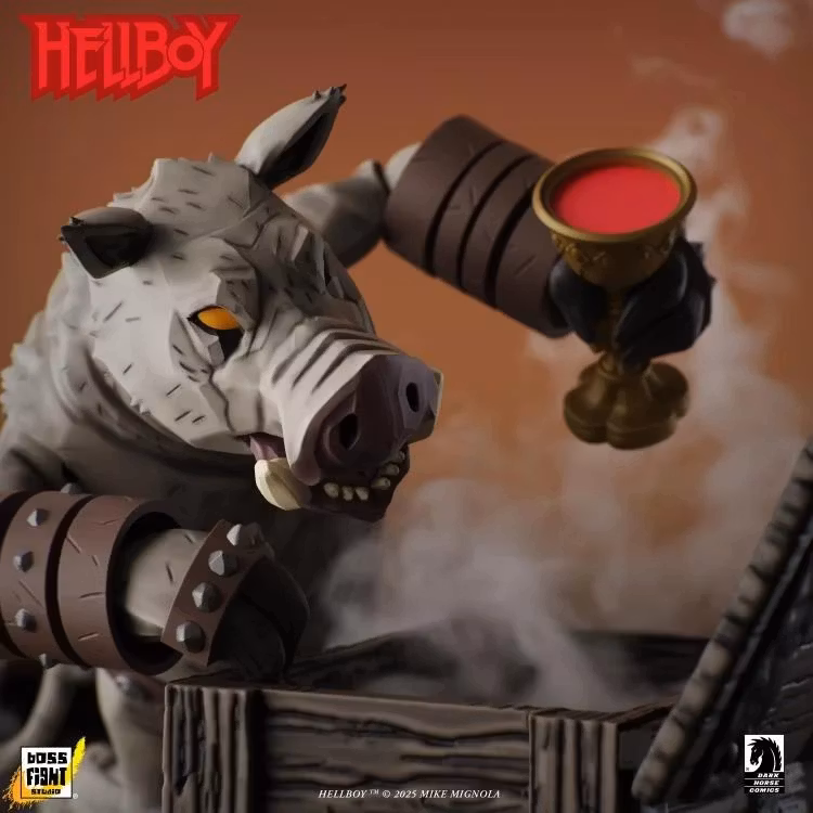 The embittered changeling Gruagach wants to enact his revenge against Hellboy, and to do that, he’ll start a brutal war with dire consequences. Gruagach from “The Wild Hunt” story has 26 points of articulation, mallet, blood chalice with lid, hinged Blood Queen box, and alternate hands.