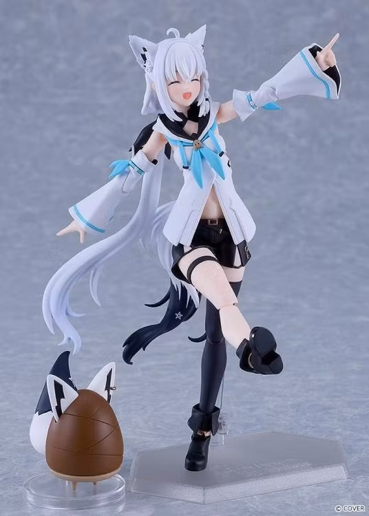 From the popular virtual YouTuber group hololive production comes a figma of the Shirakami Fubuki! The smooth yet posable figma joints allow you to act out a variety of different scenes. A flexible plastic is used in specific areas, allowing proportions to be kept without compromising posability. She comes with three face plates including her smiling face, her closed-eyes smiling face and a surprised face! Optional parts include a portable game device, Sukonbu, Oruyanke, and fox ears with crown! An articulated figma stand is included, which allows various poses to be taken.
