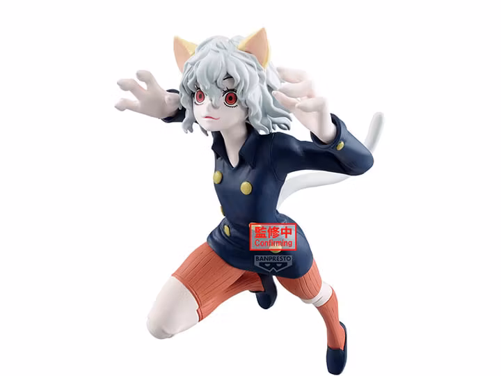 Banpresto är stolta över att presentera nästa bidrag i deras-favorit Vibration Stars-linje: Neferpitou! Klädda i sina blå och röda kläder har de ett fokuserat uttryck i ansiktet när de studsar. Missa inte att utöka din Hunter x Hunter-samling och beställ din figur idag!