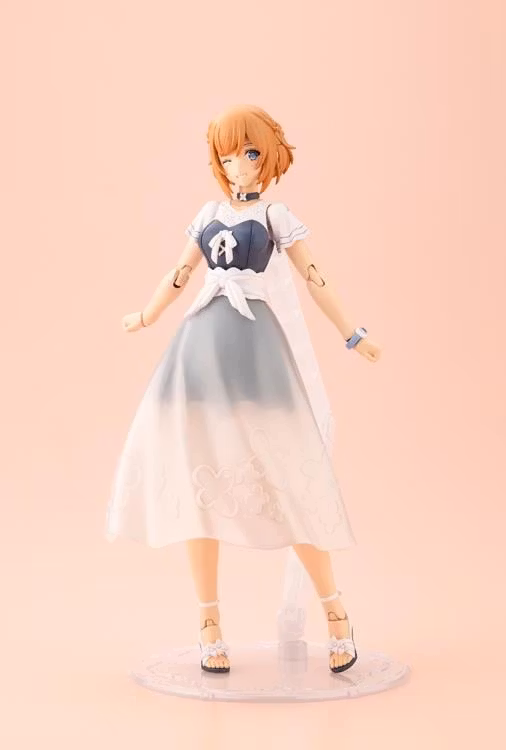 Den långa kjolen är gjord i en hel del med en klar vit färg för att återskapa det skira tyget, som också kan tas bort för en kort kjollook. De 3 mm anslutningsfogar som är placerade över hela modellen möjliggör anpassning över olika Kotobukiya-modeller i originalserien.