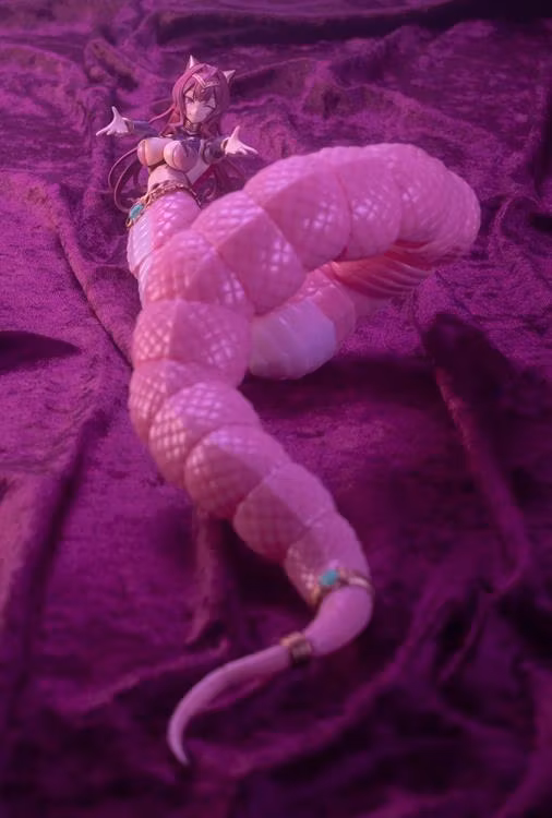 From Kotobukiya’s Sci-Fi Fantasy plastic model series, ARCANADEA, comes Meltina, the lamia-form Dears, brought to life from an original design by renowned illustrator Z-ton. This highly detailed model kit offers two distinct configurations: Normal Mode for everyday appearance and Wilize Mode for combat, each with its own unique parts and accessories. Featuring flexible articulation through double joints in the upper arms and ball joints in the segmented serpent-like tail, Meltina is fully poseable for dynamic display. She comes with four pre-printed face parts, optional decals for custom expressions, and six sets of newly sculpted PVC hands. Her removable ears can be swapped with those of other Dears, and neck parts are included to allow compatibility with Frame Arms Girl and Megami Device series heads.