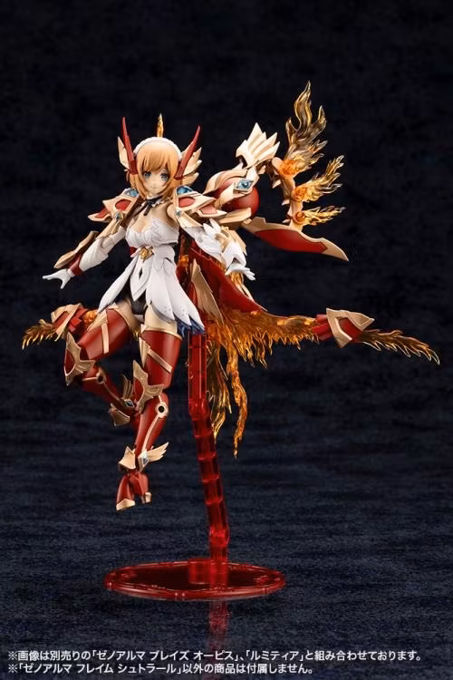 The parts can be reassembled to create two forms: Monster form, which can be fully built with this kit alone, and the weaponry form for the character Lumitea. Flame Straile can also be combined with Blaze Ophis to create the giant XenoAlma, Explode Volcarion. Each part is connected via 3mm joints, allowing them to be used not only with Arcanadea characters but with all original Kotobukiya series models.
