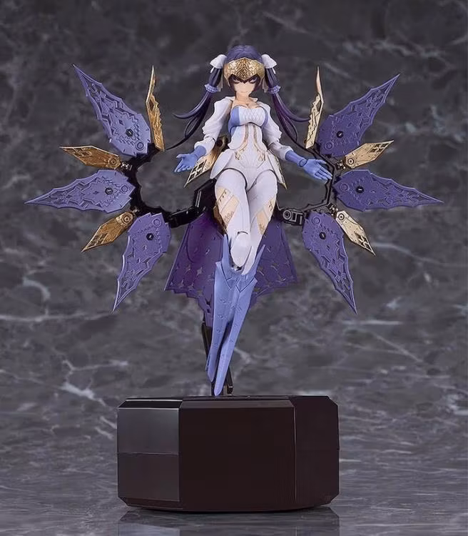 Basic model planned by Masaki Apsy and designed by huke with the face being designed by Renya of MUGUET. The main body, also known as fragment, fits in the hexagonal box together with the weapon. Three types of pre-painted replacement facial expression parts are included with all parts being pre-painted/colored. Extra details can be added with included decals.