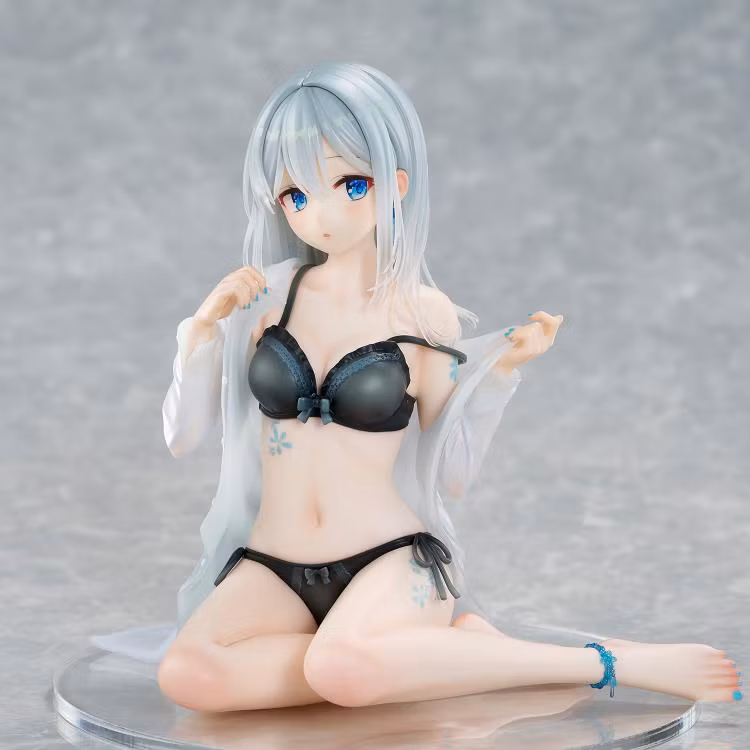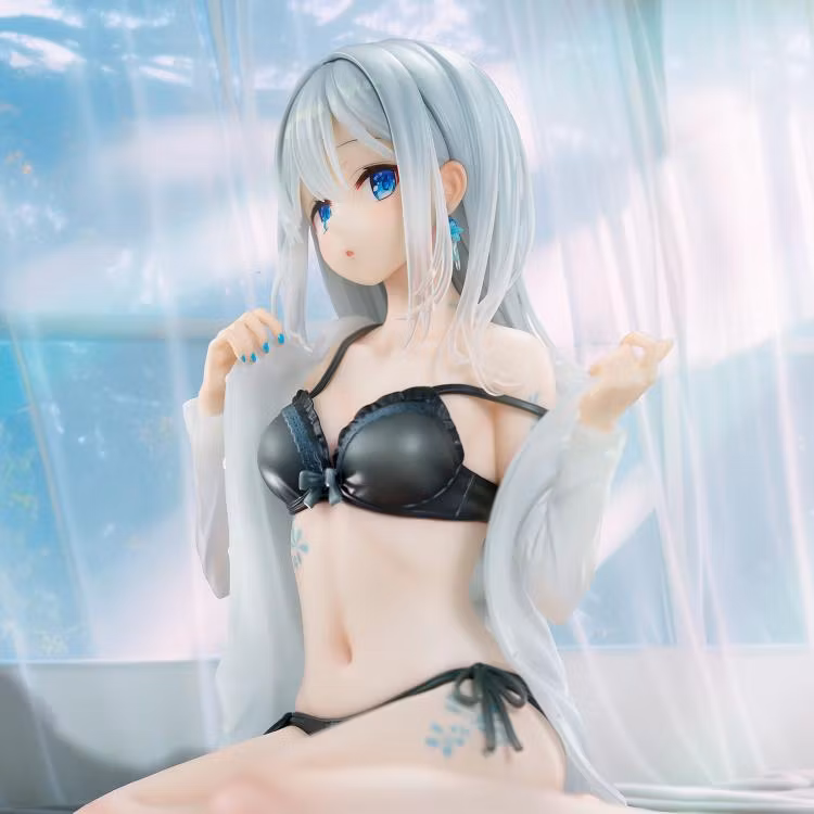 Fuumi's illustration "Sky Blue Morning" is three-dimensionalized with a figure! The hair and oversized shirt are made of clear parts, faithfully reproducing the transparency seen in the original artwork. The hair transitions from solid parts to clear plastic, brining emphasis to the delicate nature of the figure.