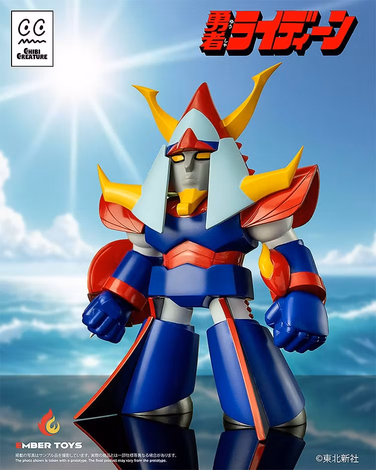 En superrobot ansluter sig till Chibi Creature mjuk vinylserie av Ember Toys! Den första roboten i serien är Raideen från Raideen the Brave. Chibi Creature Reideen är en figur i chibi-stil av Reideen som är cirka 17 cm hög. Figuren framhäver den unika huvuddelsdesignen, samtidigt som den behåller element som Gorgon-svärdet och God Breaker i Raideens vänstra och högra armar, samt den distinkta axelrustningen. Den genomarbetade designen av den mjuka vinylen och den delikata lacken gör den till ett måste för superrobotfans.