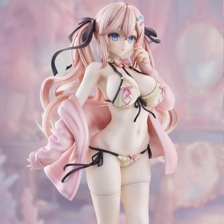 Dressed in an adorable swimsuit with signature ribbons, her charm is further enhanced by a casually draped cardigan. Her voluminous twin tails, with each strand intricately sculpted, faithfully capture the essence of the original illustration.