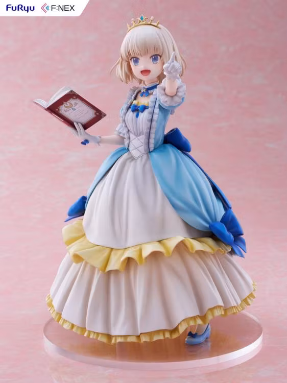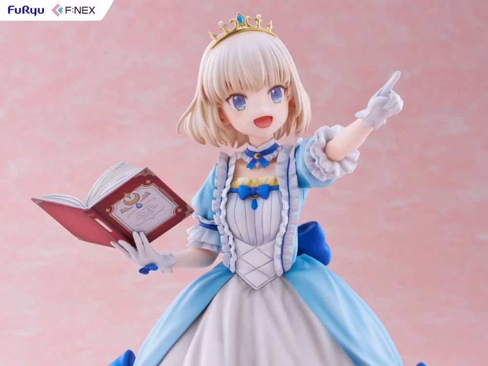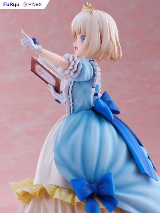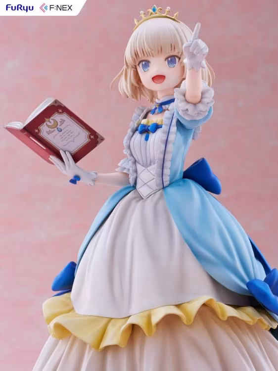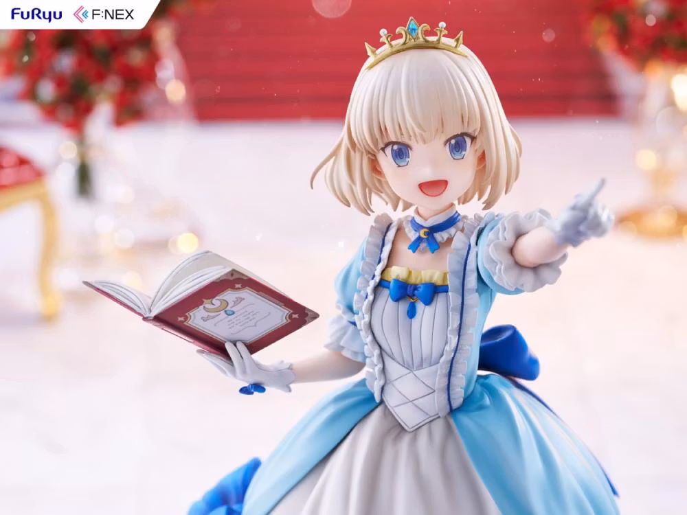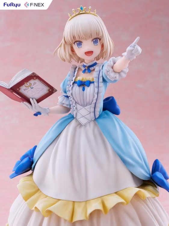 Från animen Tearmoon Empire kommer en figur i skala 1/7 med Mia Luna Tearmoon. Mia håller i en bok medan hon pekar och bär en vit, blå och gul klänning.