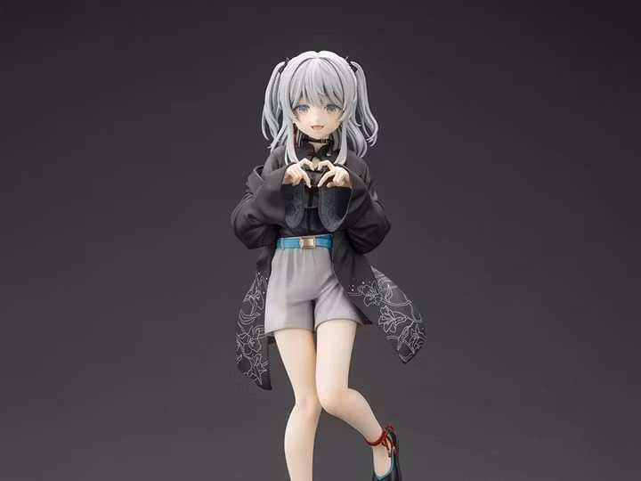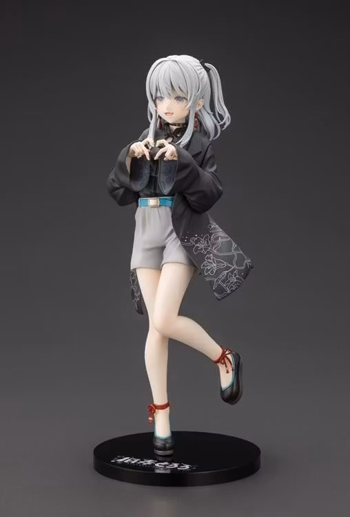 Raising one leg while forming a heart with her fingers, this piece perfectly captures her cute and cheerful personality.