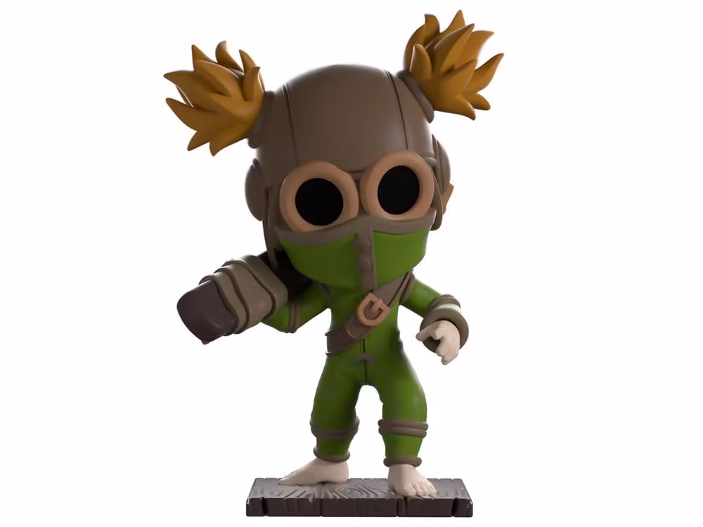 The next stop on Alone's escape from the Spiral is Youtooz! Standing bravely at 5 inches tall as she takes a cautious step forward with bare feet to minimize the noise, she wears an all-green jumpsuit with a giant wrench resting over her right shoulder. With an aviator-style helmet covering her head as a pair of orange pigtails poke through either side, the collar of her jumpsuit reaches up to cover her mouth as large goggles hide her eyes.