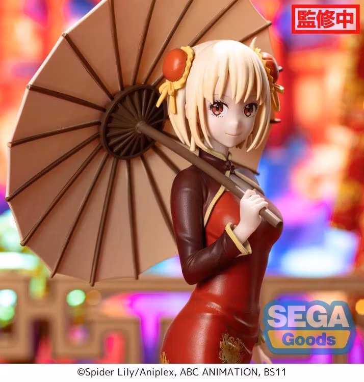 Sega is proud to present a new entry in their Luminasta line based on the smash hit anime series Lycoris Recoil: the protagonist Chisato Nishikigi! Dressed in an adorable Chinese dress, she holds a parasol in her hand as she strolls through a summer festival. Grow your Lycoris Recoil collection by ordering your figure today!
