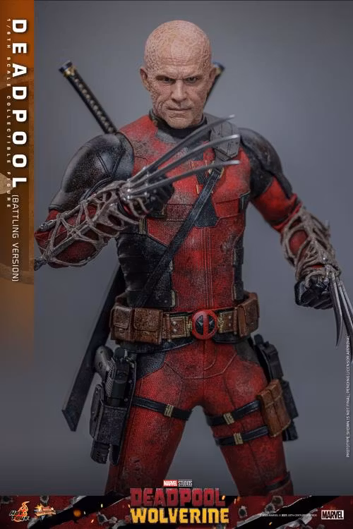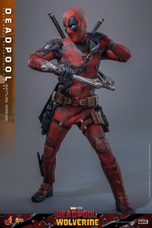 Dessutom, baserat på den virala Deadpool-öppningsscenen, kommer figuren med en uppsättning av Wolverines ben och ett extra par Deadpool-händer med klor för fansen att posera med. Den här stridsversionen av Deadpool har särskilt en stridsskadad dräkt med detaljerade vädereffekter och innehåller hans signaturvapen som katanas, dolkar och pistoler, samt en diorama-figurbas med Time Door-tema.