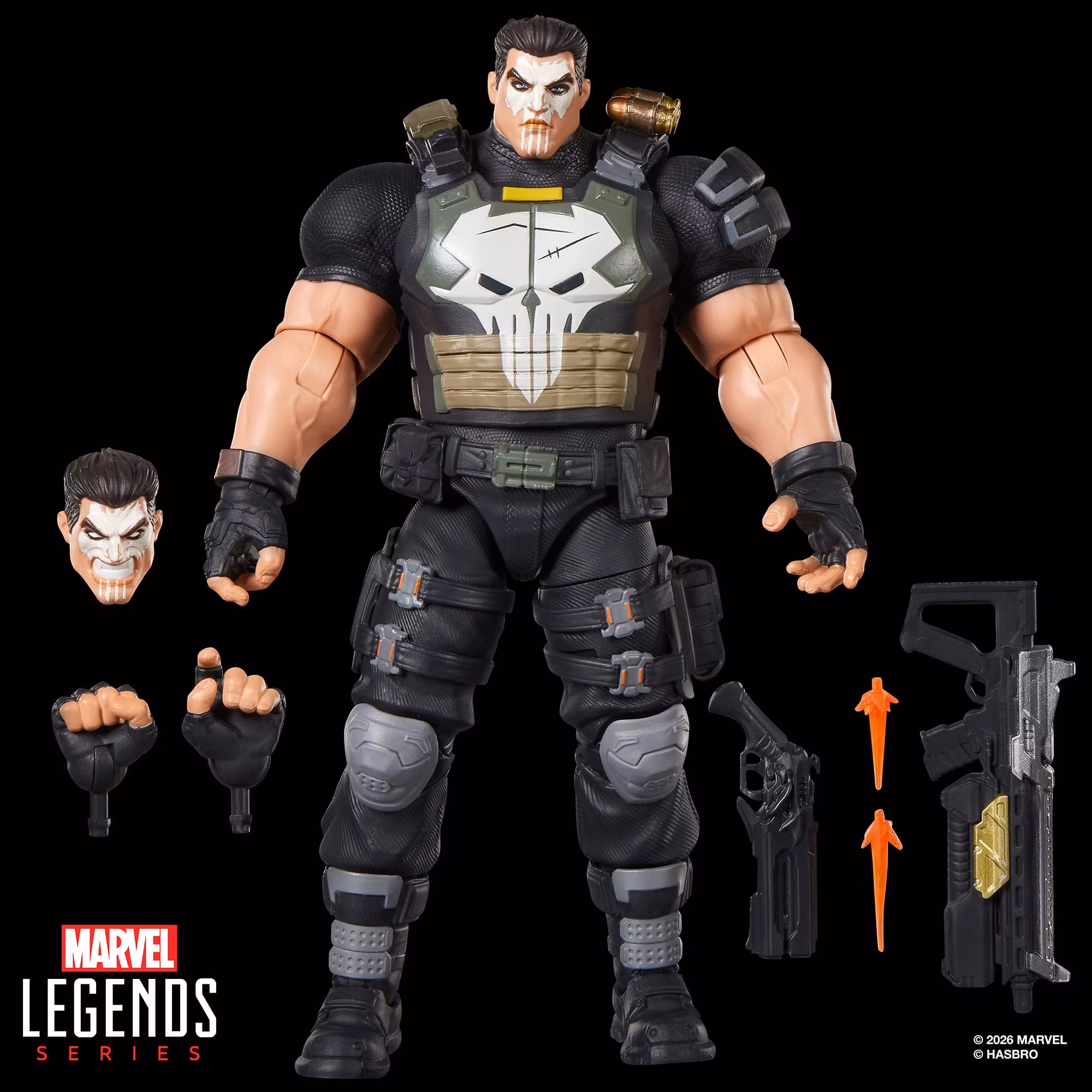Bring the excitement and wonder of the Marvel Universe to your collection with Hasbro Marvel Legends The Punisher action figure! This collectible 6-inch scale Marvel figure is inspired by the comic book character's appearance in the Marvel Rivals video game. Figures are fully articulated with premium design and poseable heads, arms, and legs. This Marvel Rivals action figure set comes with 7 accessories, including an alternate head, 2 alternate hands, 2 blast effects, and 2 weapon accessories to pose unleashing his Deliverance and Adjudication game attack abilities. Hasbro Marvel action figures' 6-inch scale makes them great for displaying in fans' collections. Reimagine game-inspired scenes on your shelf with Marvel Rivals collectibles.