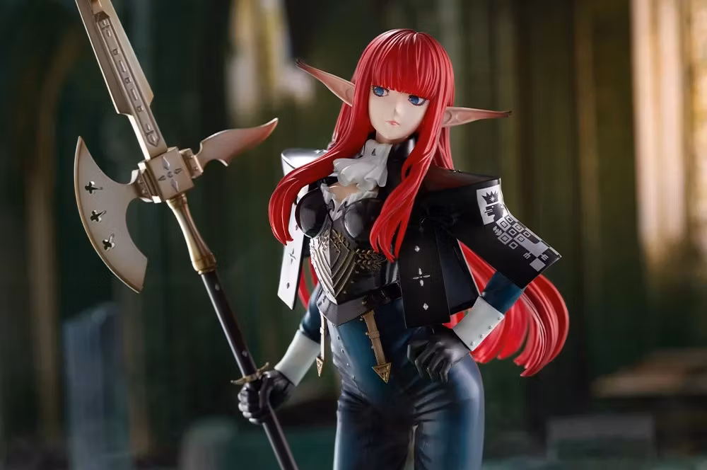 Her unique outfit is carefully recreated down to its heavy texture, and even the smallest details are intricately sculpted. Additionally, her weapon has an impactful finish, giving the figure an overwhelming presence. Her flowing red hair has been meticulously sculpted and painted, making it stunning from any angle.