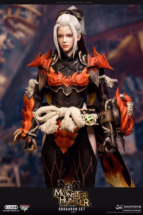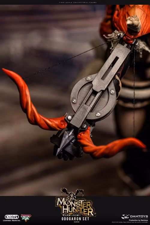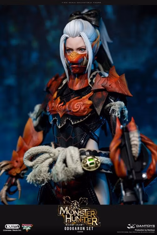 This figure displays the memorable Odogaron armor set from the Monster Hunter video games and is highly articulated to create a variety of fun poses with the hunter. The figure comes with additional parts and accessories to fully prepare your figure for their next monster hunt. This deluxe version includes the Odogaron dual blades weapon accessory and a special base for displaying the figure.