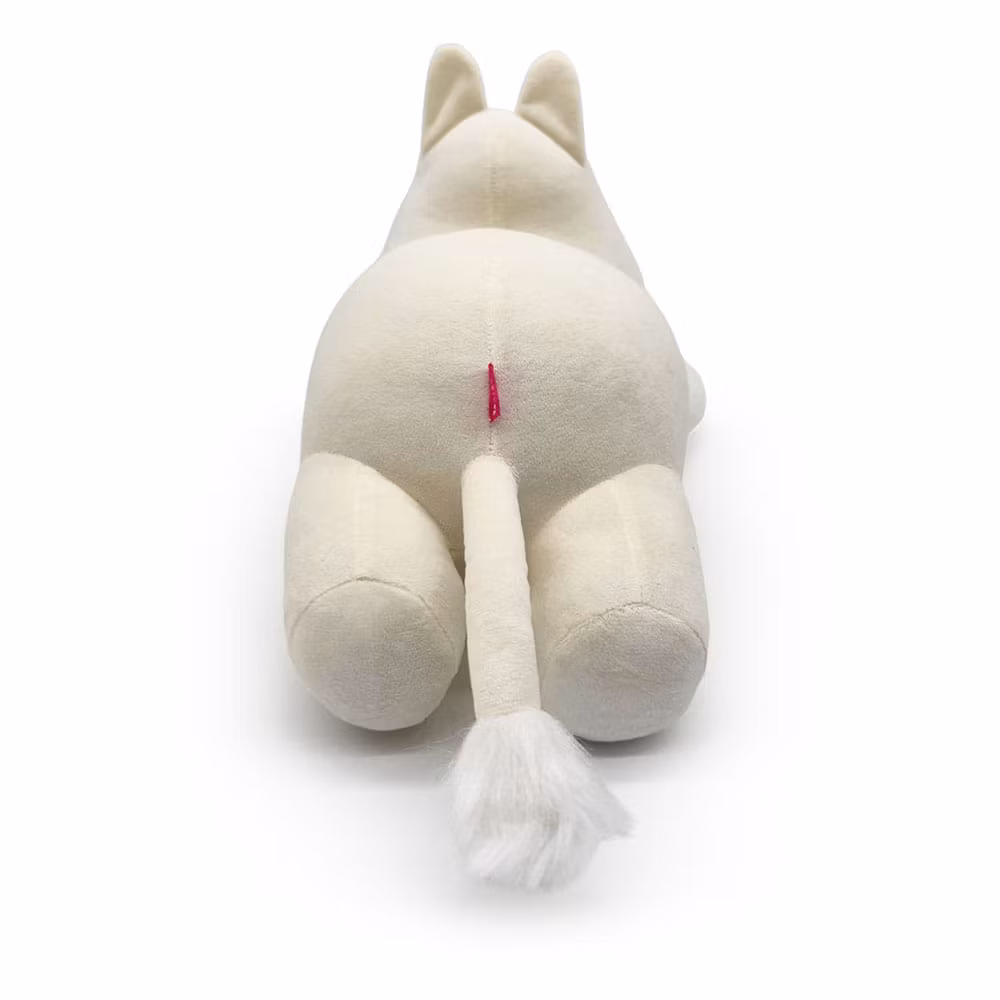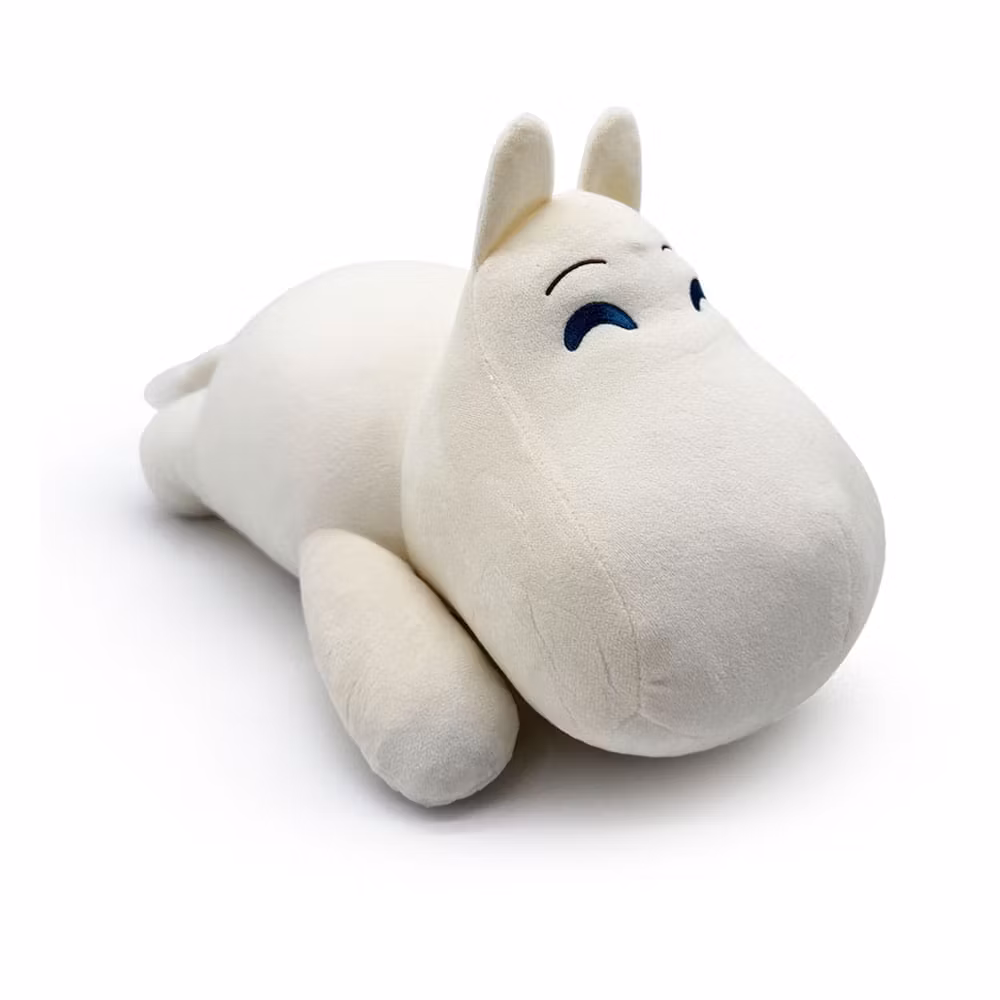 This Moomin is a long way from Moominvalley and is in need of a good nap to rest up from their travels! Laying at 16 inches long with a pair of content eyes and a long snout stretching forward as two short round ears poke out from the top of their head. Chunky arms and legs splay out from their white body as a thin tail with a fluffy tip relaxes behind them. This plush is packed to the seams with 100% PP cotton and is made of a mixture of minky and faux fur materials, absolutely perfect for cuddling or just taking a snooze with!