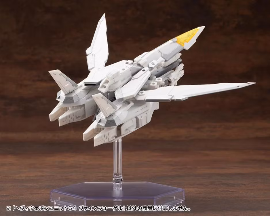The main wings are movable, and can be switched between forward-swept and backward-swept, or folded. The small drone Humming Beak is included. Humming Beak can also combine with Weiss Vogel. The body is molded in white, the same color used for items such as Orbit Circle and Exenith Wing White Ver., allowing for color-matched customization without the need for painting any pieces.