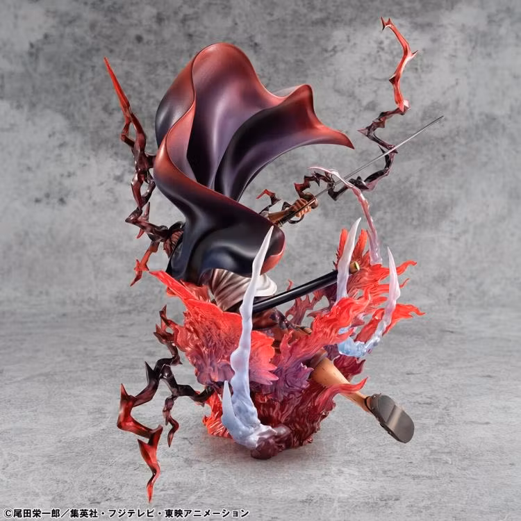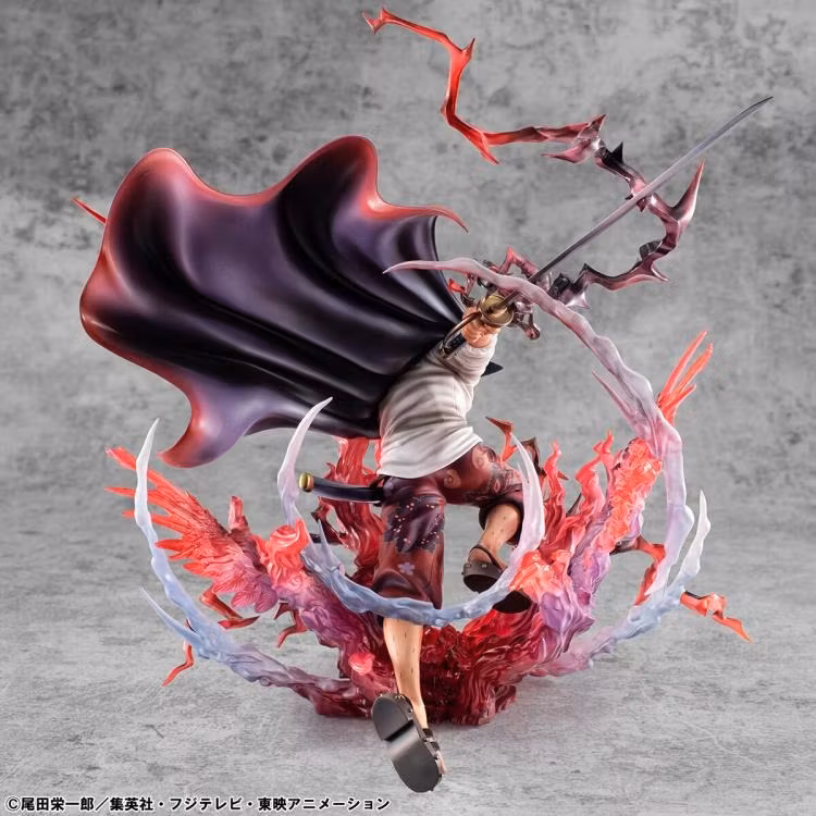 Shanks den Rödhårige, en av havens Fyra Kejsare och ledare för Rödhåriga Pirater, dyker slutligen upp i POP MAX-serien. Baserad på Kamihiki-tekniken där han högg ner Eustass Kid och hans pistol med ett enda slag, är denna figur återskapad i MAXIMAL kvalitet, med ett manligt uttryck, dynamisk skulptur, texturer, effekter och flera lager färg. Med de tidigare Four Emperors äntligen samlade i MAXIM-serien är detta ett måste för ONE PIECE- och POP-fans världen över.