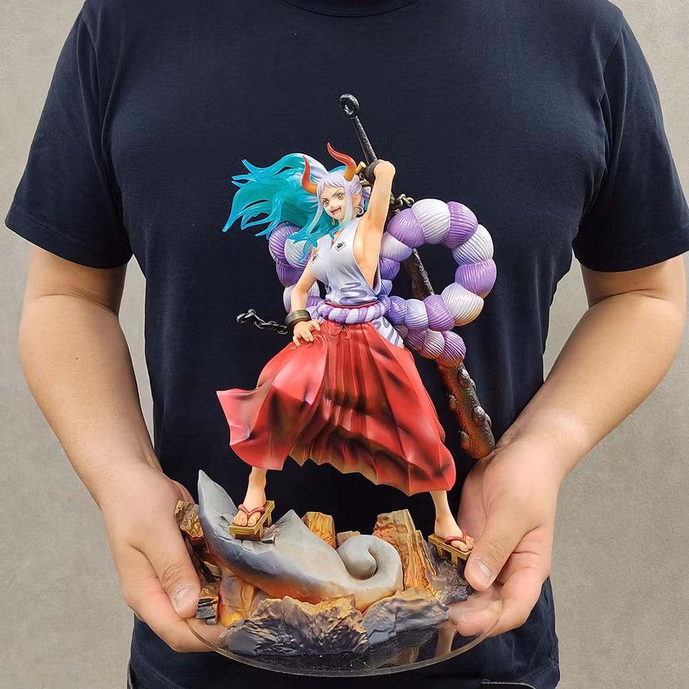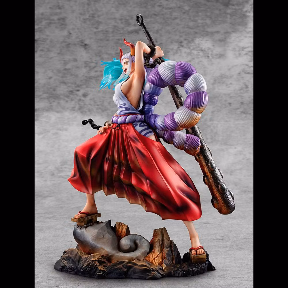 Portrait of Pirates Wa-Maximum-serien fortsätter med dottern till Kaido av de fyra kejsarna, Yamato! Den här fantastiska figuren är cirka 12 tum lång och har otroliga detaljer, ner till den spruckna steniga basen.
