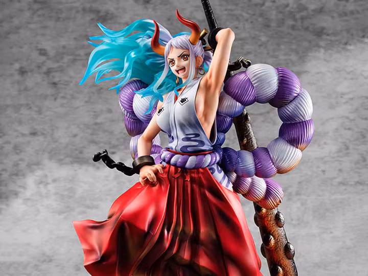 The Portrait of Pirates Wa-Maximum series continues with the daughter of Kaido of the Four Emperors, Yamato! Measuring around 12 inches tall, this fantastic figure features incredible detail, down to the cracked rocky base.